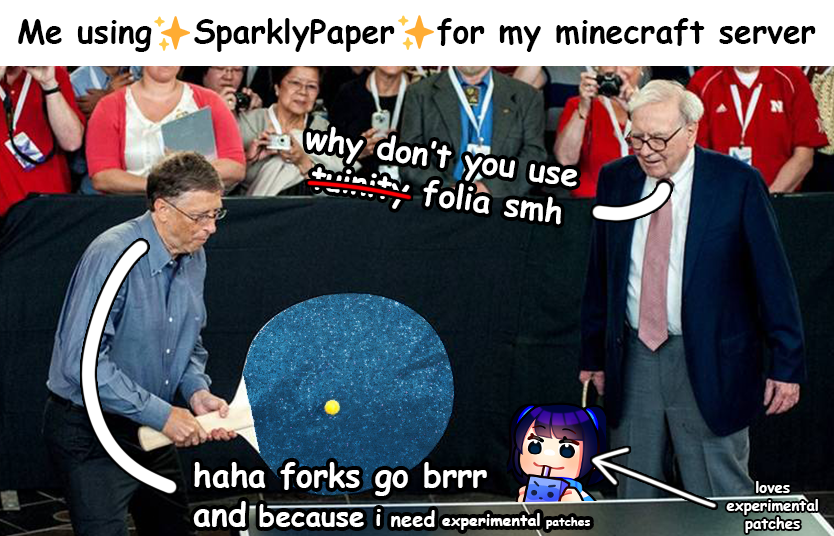 While we could cherry-pick *everything* from other forks, only patches that I can see and think "yeah, I can see how this would improve performance" or patches that target specific performance/feature pain points in our server are cherry-picked! In fact, some patches that are used in other forks [may be actually borked](docs/BORKED_PATCHES.md)...